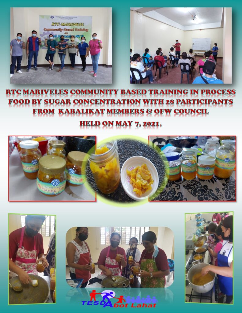 TESDA RTC Mariveles led by their center administrator, Mr. Neil G. Santioque, with the help of Ms. Evelyn Villegas (trainer) and assistant Ms. Daisy Mae Gonzales conducts community based training in Process Foods by Sugar Concentration, one of the units of competency of Food Processing NC II.